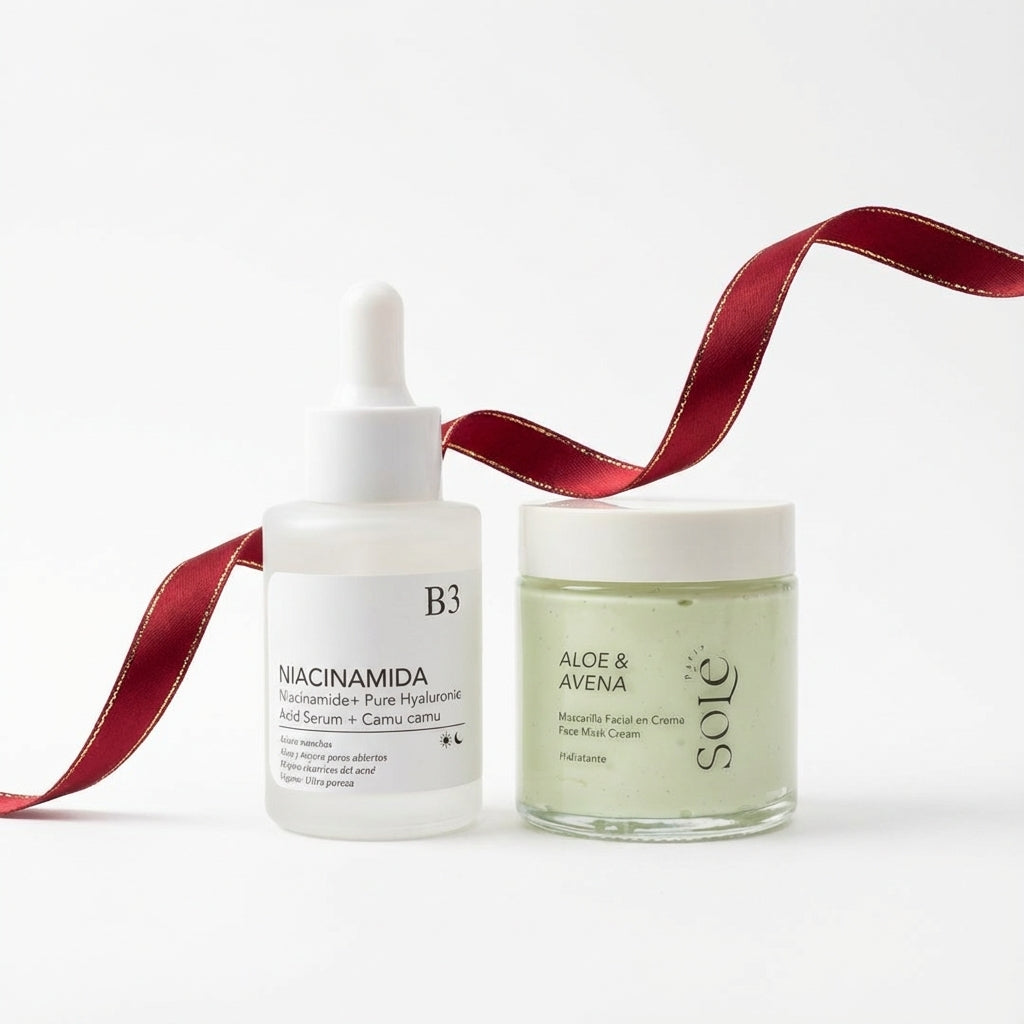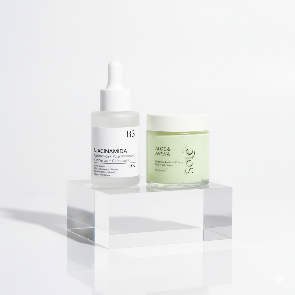 Este dúo está diseñado para combatir el acné, reducir manchas y mejorar visiblemente la salud de tu piel. La mascarilla de aloe vera y avena calma la piel, reduce la inflamación y limpia en profundidad sin resecar.
