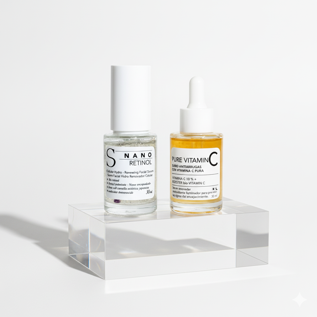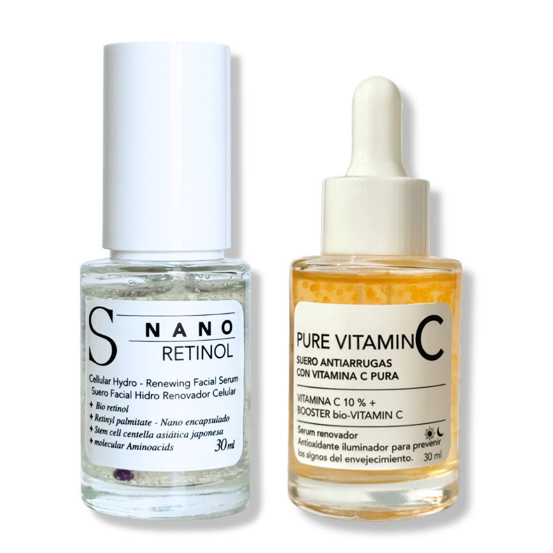 El Dúo Antiedad Sole Paris reúne la ciencia de dos fórmulas inteligentes diseñadas para renovar la piel desde el interior: Nanoretinol y Vitamina C Triple Nanoencapsulada.