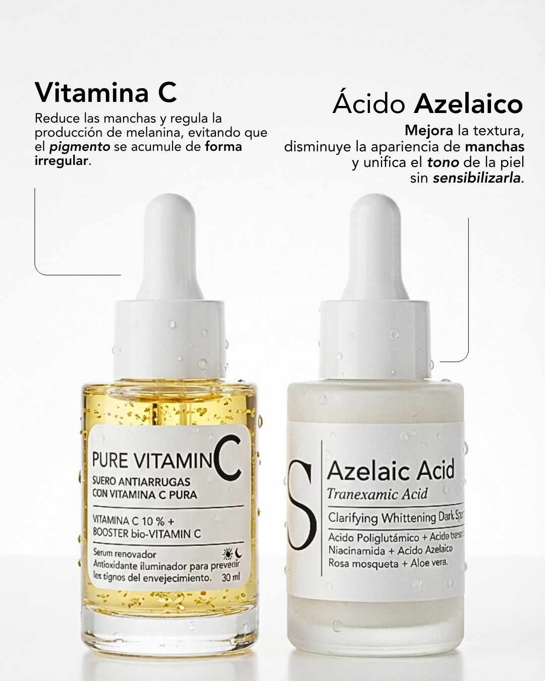 El dúo avanzado que potencia la apariencia de tu piel desde la ciencia dermocosmética. Una combinación que ilumina, reafirma, mejora la apariencia de manchas y equilibra la piel, actuando eficazmente sin comprometer la barrera cutánea.