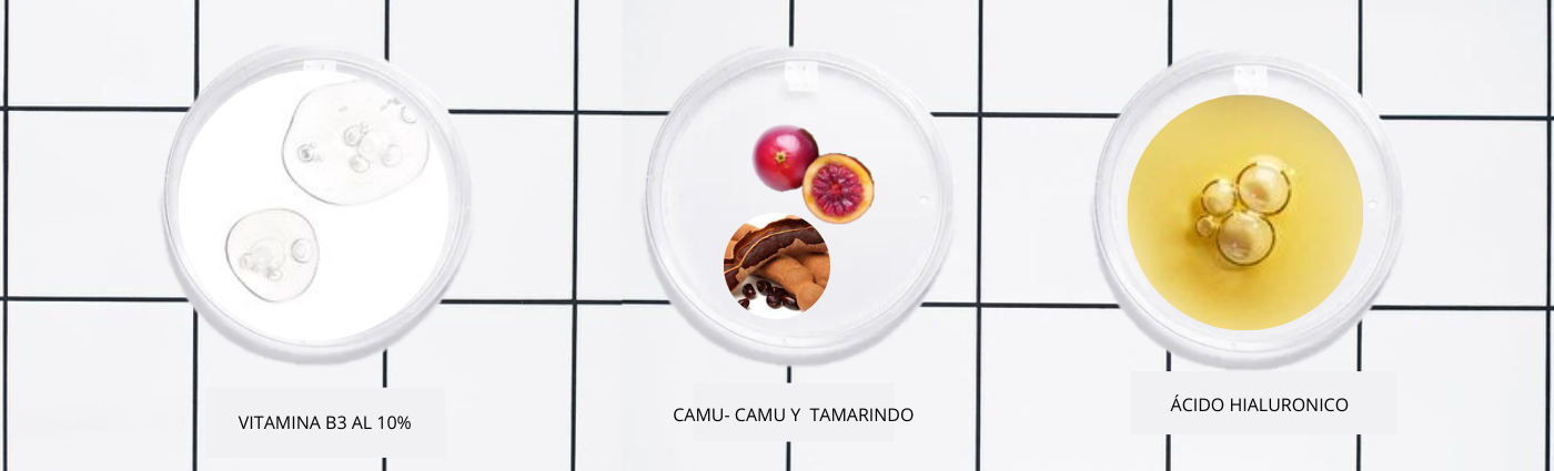 Serum orgánico rico en NIACINAMIDA AL 10% pura en combinación con CAMU CAMU y ÁCIDO HIALURÓNICO de alto y bajo peso molecular, que controla la oleosidad, seboregula, acción antiacné, alisa y reduce los poros abiertos,hidrata profundamente, minimiza el exceso de grasa en tu piel, equilibra el ph del rostro, mejora cicatrices y aclara manchas. Efecto hidratante desde el minuto 1.