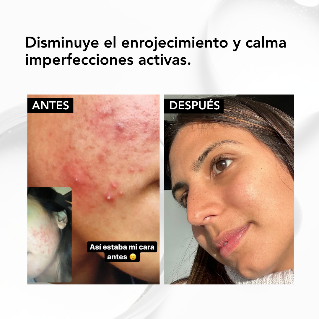 La Niacinamida al 10% regula la producción de sebo y reduce la inflamación, dejando tu rostro fresco, mate y con textura uniforme.
