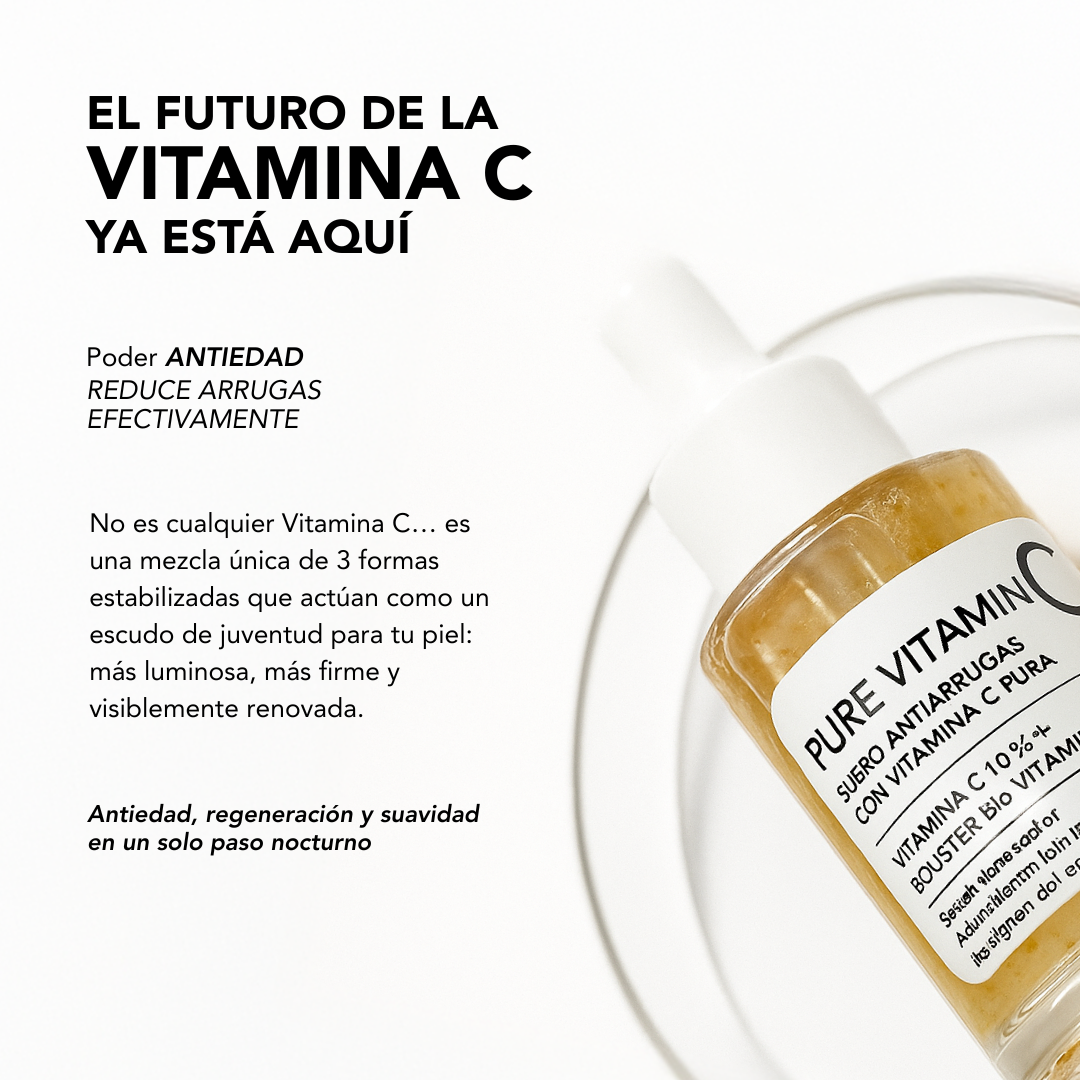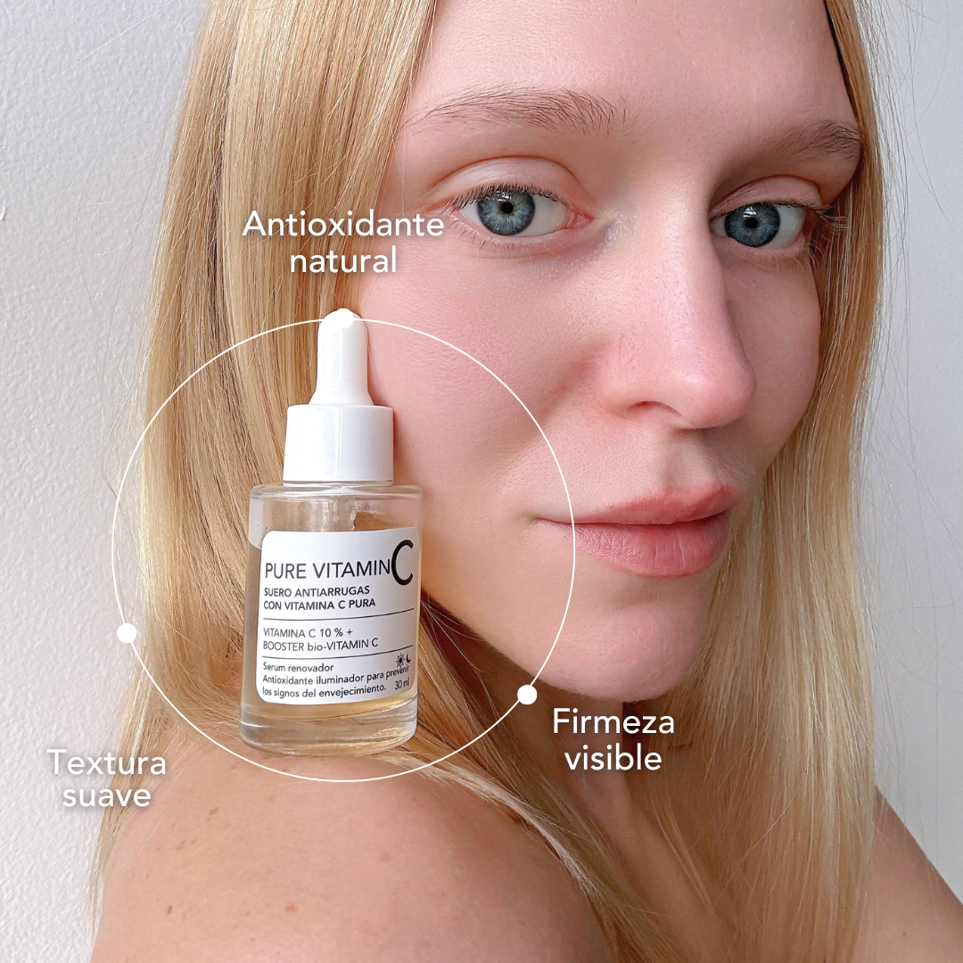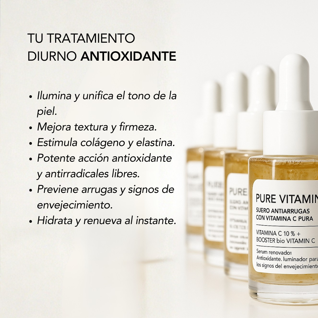 • Ácido ascórbico 10% estabilizado: potencia la firmeza, elasticidad y luminosidad real.