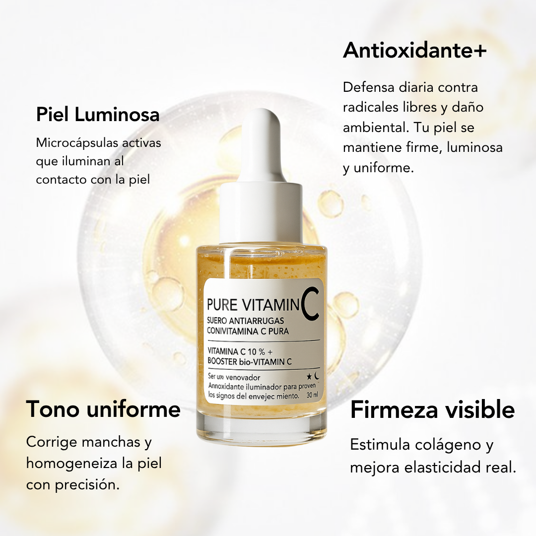 La Vitamina C encapsulada despierta la luz natural de tu piel al instante, revelando un brillo uniforme y saludable sin opacidad ni tono apagado.